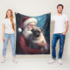 Pug With Santa Claus Festive Christmas Fleece Blanket