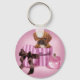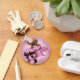 Gorgeous puggle puppy in stripy mauve box, with perfume and light purple background, painted by artist Maryline Cazenave.