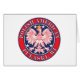 Polish pride in your American hometown! This design features the white stars on blue of the United States of America with a White Eagle from Poland and the words Polish American and Pulaski, WI.