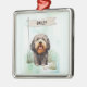 This Puli personalised ornament features a watercolor design with a customisable name flag, framed in silver with a red ribbon. A sweet keepsake.