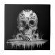 Pulled sugar skull, melting sugar skull with poppies landscape in black and white colour palette.