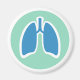 Pulmonology or pulmonologist fridge magnet featuring a blue outline of a pair of human lungs with white outline on a mint green circle. For custom requests or help with customising please use the store contact link.
