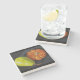 The coasters are gorgeous, a quality feel and heavy weight. They look like a precious archeological find. A rustic stone juxtaposed with a modern floral black and white print. I like the way the print goes slightly imperfect on the cut stone edges giving them a kind-of natural beauty.