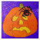 Pumpkin and Spider Abstract Halloween Art Ceramic Tile