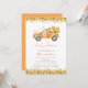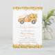 The design of the Pumpkin Autumn Truck Baby Shower Invitation is a true delight, perfectly encapsulating the enchanting spirit of autumn and the anticipation of welcoming a precious little one. The use of watercolor techniques lends a graceful and ethereal touch to the design, with delicate brushstrokes that seem to dance across the paper. The chosen floral motifs are a testament to the beauty of nature during the fall season, with each petal and leaf lovingly painted in warm and vibrant hues. The colours, ranging from rich oranges to deep reds and golden yellows, evoke the magical transformation of foliage during this time of year, creating a captivating visual spectacle. At the heart of this invitation is a village truck with pumpkins and sunflowers. It serves as a charming symbol of the fall harvest and represents a sense of adventure and excitement. Matching items are available.