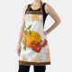 Pumpkin berries, leaves brown border fall Happy Thanksgiving all-over print apron. It features a yellow, orange pumpkin with leaves, red berries and maple leaves in autumn colours accented witbrown borders.