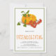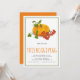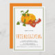 Pumpkin, berries orange back Friendsgiving fall invitation for Thanksgiving. It features an orange pumpkin with green leaves and red berries, a green frame and your text. The back is of orange solid colour.