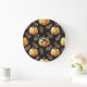 Pumpkin Black Background Watercolor Pattern Large Clock