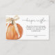 Pumpkin Bow Diaper Raffle Card - A charming and customisable diaper raffle card featuring an orange pumpkin with delicate white bow. Perfect for a fall or pumpkin-themed baby shower, this card adds a unique and festive touch to your celebration while encouraging guests to participate in the diaper raffle.