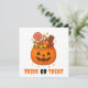 Send spooky-sweet greetings with this festive flat card featuring a cheerful pumpkin bucket overflowing with colourful candies and lollipops. Perfect for party invitations, thank-you notes, or seasonal messages, this playful design adds a charming Halloween touch to your correspondence. Ideal for kids’ parties, trick-or-treat events, or autumn celebrations!