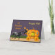 Pumpkin Carriage Sleepy Hollow It's Pumpkin Season Happy Fall Card - Pumpkin Head Horseman and Daredevil Horse Driving at Night, art by Kristie Hubler, inspired by Sleepy Hollow, with Daredevil horse driven ornate pumpkin carriage, Pumpkin head horseman with pumpkin in hand, proudly carrying, for Halloween / Autumn / Harvest season! Art by Kristie Hubler, copyright protected. For licensing or wholesale, of art, products, or printables, please contact Kristie at fabricatedframescom at gmail dot com