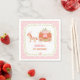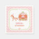 Party supplies paper napkins with a fairy tale touch fitting for a princess! It features a horse and a pumpkin carriage which is decorated with lots of flowers and floral elements. An elegant decorative floral wreath for border. Pink chevron zigzag pattern for background. Great for parties held in the autumn fall season! Personalise easily with your party message.