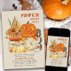 Pumpkin Carving Party Invitation. Rustic farmhouse watercolor design in gender neutral, rich autumn colours of burnt orange, golden yellow and grey. The illustration features an orange pumpkin with sunflowers, jack o lantern and white pumpkins on a farmhouse wooden crate, decorated with fall leaves and BOO porch sign.