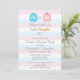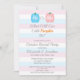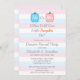 He or She? What will our little pumpkin be? Fall pumpkin gender reveal invitation with pink, blue and white striped background