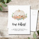 This autumn moving announcement postcard is decorated with a watercolor pumpkin and foliage.