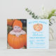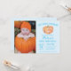 Pumpkin First Birthday Invitation with Blue Background custom photo. Girl Bday Party Invite. 1st 2nd 3rd 4th 5th 6th 7th 8th 9th 10th, Any Ages. For further customisation, please click the "Customise it" button and use our design tool to modify this template.