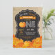 Pumpkin First Birthday Invitation with orange and burlap background. For further customisation, please click the "Customise it" button and use our design tool to modify this template.