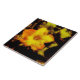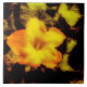 The shapely golden yellow flower in the original photograph by ZoeSPEAK on this large Ceramic Tile is a bloom on a pumpkin vine, started from seeds. It makes a cheerful statement among its green leaves touched by sunlight. We shall see if any pumpkins appear.