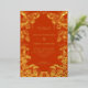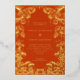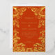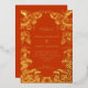 An elegant fall wedding invitation with a frame of hand drawn pumpkins and leaves in real gold foil on a burnt orange background. Personalise with your details in gold.