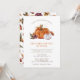 Pumpkin Friendsgiving Dinner Invitation. This cute fall pumpkin dinner invitation features beautiful watercolor burnt orange and white pumpkins and autumn florals with a matching floral pattern on the back. Easily personalise from Friendsgiving Dinner to Thanksgiving Feast.