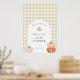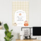Baby Shower Welcome Sign featuring an arched frame of watercolor pumpkins and neutral gingham pattern. Customise with your information for the mum to be. Click "click to customise further" to change the font style, size or colour.