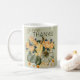 The “Pumpkin Harvest Floral Fusion” coffee mug combines rich warm hues of pumpkins and marrow squash, the delicate charm of orange, yellow flowers, and leaves, capturing the essence of fall. Personalize the wording “Give Thanks” to your liking, gift it to friends or, simply welcome a touch of seasonal “harvest” to your coffee time.!