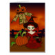 Autumnal card with illustration featuring witch and at harvesting their pumpkin, perfect for birthdays or halloween.