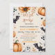 A cosy autumn-inspired blank Halloween birthday invitation decorated with pumpkins and fall leaves. Clean design with plenty of space for personalised text — perfect for a stylish seasonal celebration.