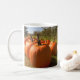 Photograph of pumpkins placed on the grass at a pumpkin farm.