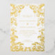 An elegant gold foil fall wedding invitation with a frame of hand drawn pumpkins and leaves. Personalise with your details.