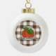 Pumpkin on Brown Plaid - Happy Thanksgiving Ceramic Ball Christmas Ornament