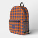 Pumpkin Orange Blue Tartan Plaid Monogrammed Printed Backpack