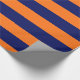 Pumpkin Orange, Navy Blue XL Stripes Pattern V Wrapping Paper
