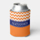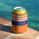 Pumpkin Orange White Chevron CB Navy Name Monogram Can Cooler