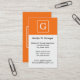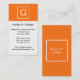 Pumpkin Orange White Framed Initial Monogram Business Card