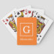 Pumpkin Orange White Framed Initial Monogram Playing Cards