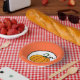 Party paper bowl shown with a cute pumpkin print. Use for the holidays Halloween or Thanksgiving.
