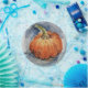 A lovely watercolour Pumpkin in shades of orange with a blue background.