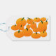 Cute digital drawing of various sized and shaped pumpkins with a fabric effect. The back has orange and white horizontal stripes. In shades of orange and green on white, this design will be fun in the fall. These gift tags are perfect to complement party favours for Halloween, Thanksgiving or fall wedding, birthday, or other events. Text is customisable.