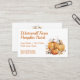 A striking business card featuring a a boho pumpkin illustration. This great card would work well for a pick a pumpkin pumpkin patch business, or any fall and seasonal related crafts company. Easy to personalise with your own company information.