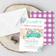 Watercolor Farmer Girl's Purple & Turquoise Old Vintage Truck, Fall Floral Pumpkin Patch Birthday Invitation.