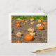 A digitally enhanced photograph of a pumpkin patch printed on a postcard.