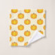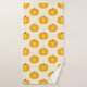 This towel features Destei's pattern of cartoon illustrated pumpkins on a light yellow background colour.