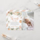 Share your gratitude in style with this neutral fall pumpkin photo thank you card. Adorned with watercolor pumpkins, cream florals, and autumn leaves, this cosy design features space for your baby’s adorable picture — perfect for thanking guests after a first birthday or fall-themed baby shower. A timeless way to capture your little pumpkin’s charm!