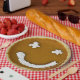 Whipped cream happy face on Thanksgiving pumpkin pie