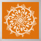 This white mandala sits on a pumpkin pie coloured background. The colour is creative and warm. Part of the Payon Mandala Collection.