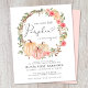 A pretty budget-friendly girl's 1st birthday party invitation with "our sweet little pumpkin is turning one!" written in a mixture of modern soft grey typography and a script with a heart swash, and a wreath of pink and coral pumpkin and floral watercolors with gold glitter accents. Personalise her name and the first birthday party details in simple grey typography. This budget semi-gloss paper is similar in weight to photo paper. A larger 5x7 traditional card stock version is also available (message us for the link).