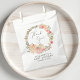 Elegant favour bags for your baby girl shower featuring "Thank You" in a pretty script with a heart swash, and a wreath of pastel pink and coral pumpkin and floral watercolors. Easily personalise the mother's name and shower date in simple grey typography.