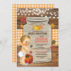 With mason jar and string light design on rustic wood background and a vintage cute baby doll image.