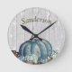 Custom Autumn Fall Blue Pumpkin Rustic Cute Grey Wood CLOCK